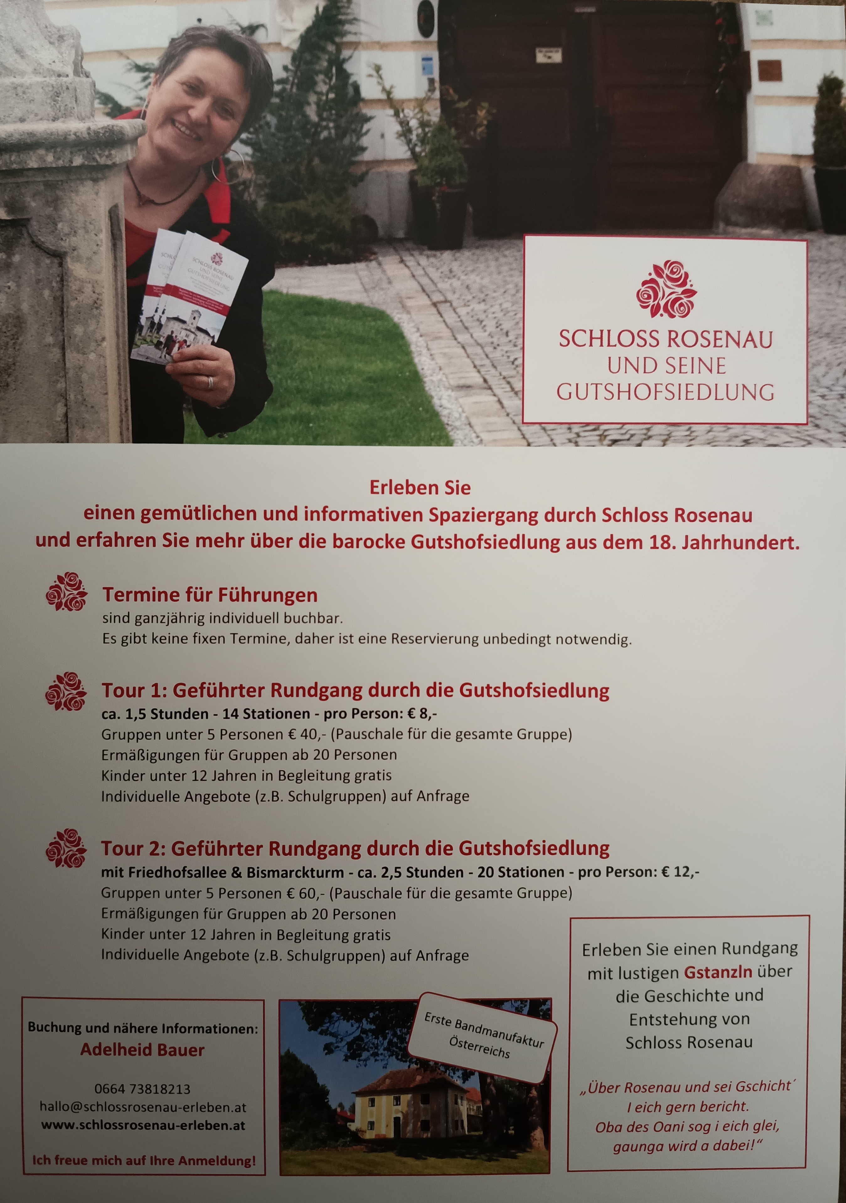 Seit 1975 beherbergt der barockisierte Renaissancebau von Schloss Rosenau das einzige Freimaurermuseum Österreichs, das einen Überblick über die durch Aufklärung, Toleranz und Humanität geprägte Entwicklung der Freimaurerei vermittelt.